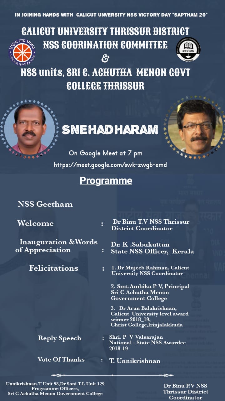 NSS Victory Day Programme Snehadharam Poster 30 9 2020